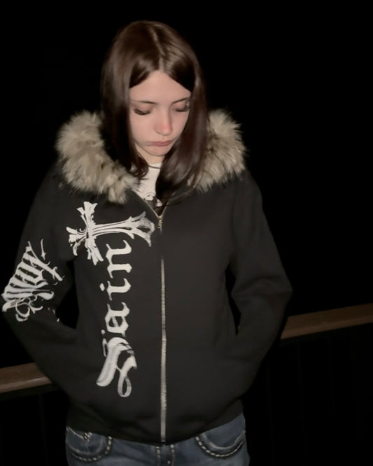 ♡ Multi-Print Fur Zip Up Hoodie ♡