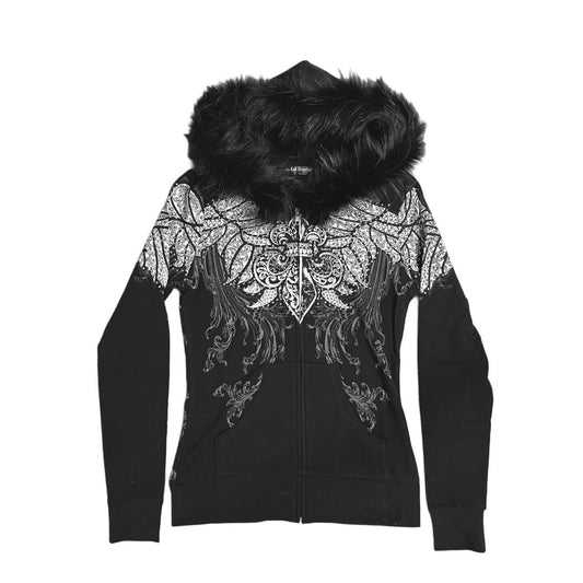 Angel Wing Rhinestone Fur Zip-Up Hoodie
